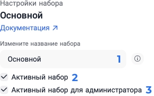 - Нажмите галочку «Активный набор», она может быть активна только у одного набора #2 на рис. 5