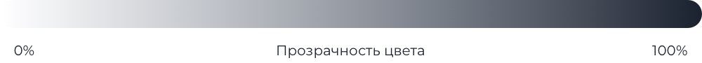 Прозрачность регулирует «насыщенность» цвета. Чем меньше процент прозрачности, тем более прозрачный цвет. 0% — цвет не будет виден, 100% — цвет полностью виден. При наложении цвета с некоторой прозрачностью на другой объект, нижний объект будет просвечиваться.