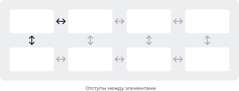 Элемент представляет собой множество элементов, которые выстроены как сетка (можно провести аналогию с таблицей Excel). Чтобы задать отступы между внутренними элементами по вертикали (горизонтали), задайте им соответствующее значение в px (например: 10)