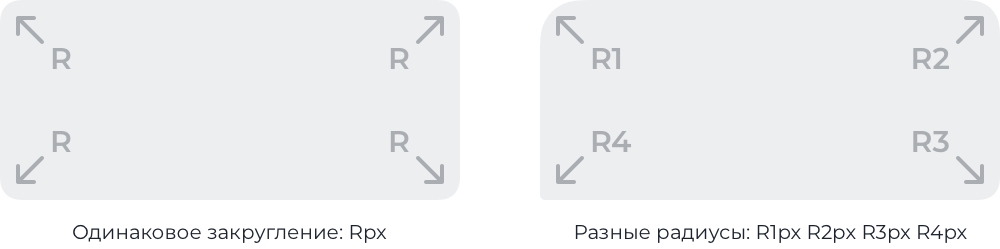Показывает размер закругления блока. В поле ввода ключа вы можете написать одно значение (например, «10px») и тогда все четыре угла прямоугольника будут иметь радиус 10 пикселей. Или же напишите 4 значения (например, «10px 20px 30px 40px»), тогда первое будет означать левый верхний угол, второе — правый верхний, третье — правый нижний, четвертое — левый нижний