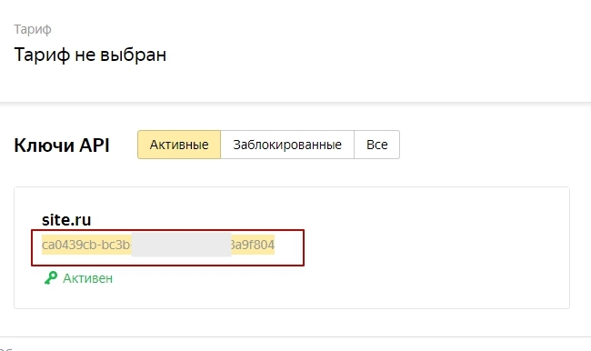 - Ключ создан, скопируйте его