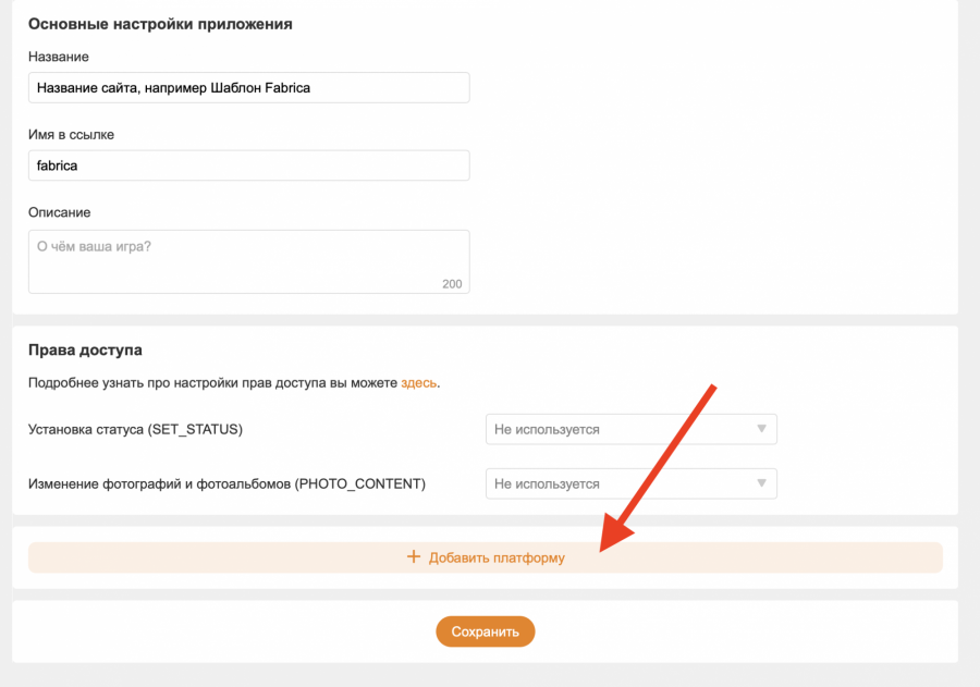 - Заполните, имя и описание и нажмите «Добавить платформу»